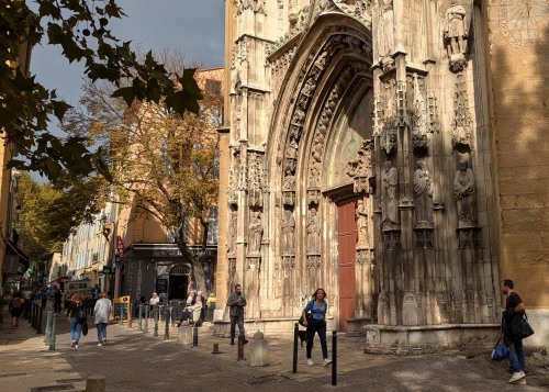 The beautiful cathedral in Aix-en-Provence is the Cathedrale de St. Sauveur. The building architecturally evolved over a long period of time, beginning in the 5th century.
